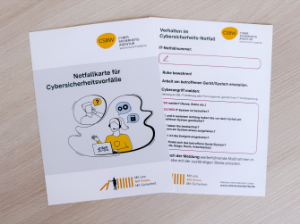 Die Cybersicherheitsagentur Baden-Württemberg hat genau für solche Fälle eine Notfallkarte für Cybersicherheitsvorfälle konzipiert. Darauf sind alle wichtigen Schritte aufgeführt, die Sie bei der Meldung eines Sicherheitsnotfalls befolgen sollten – ähnlich der Vorgehensweise bei einem Notruf des Rettungsdienstes oder der Feuerwehr.